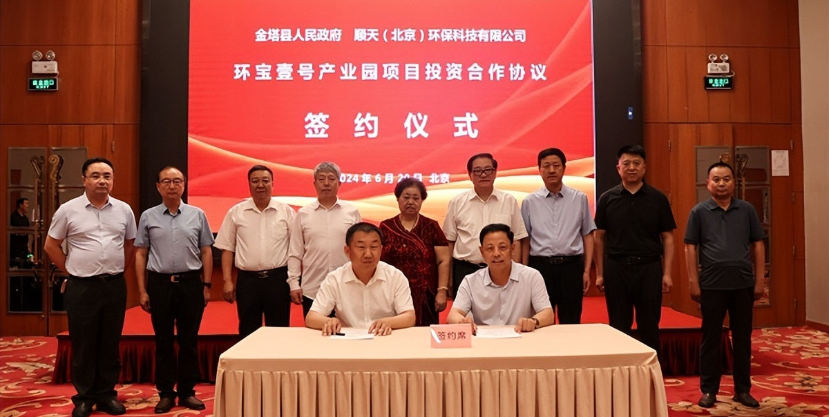 李巖副縣長、甄成君董事長分別代表金塔縣政府和順天(北京)環(huán)保科技有限公司簽訂《“環(huán)寶壹號產(chǎn)業(yè)園項目”...